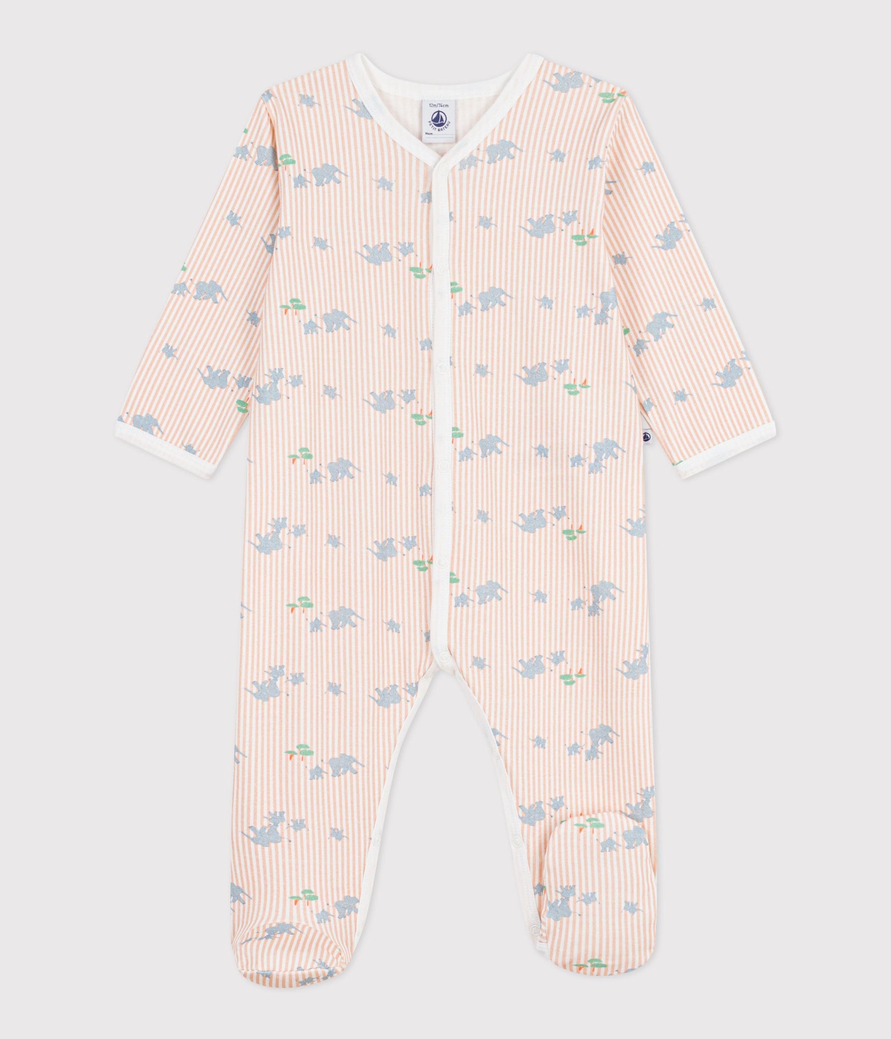Baby front snap stripe elephant print footie
