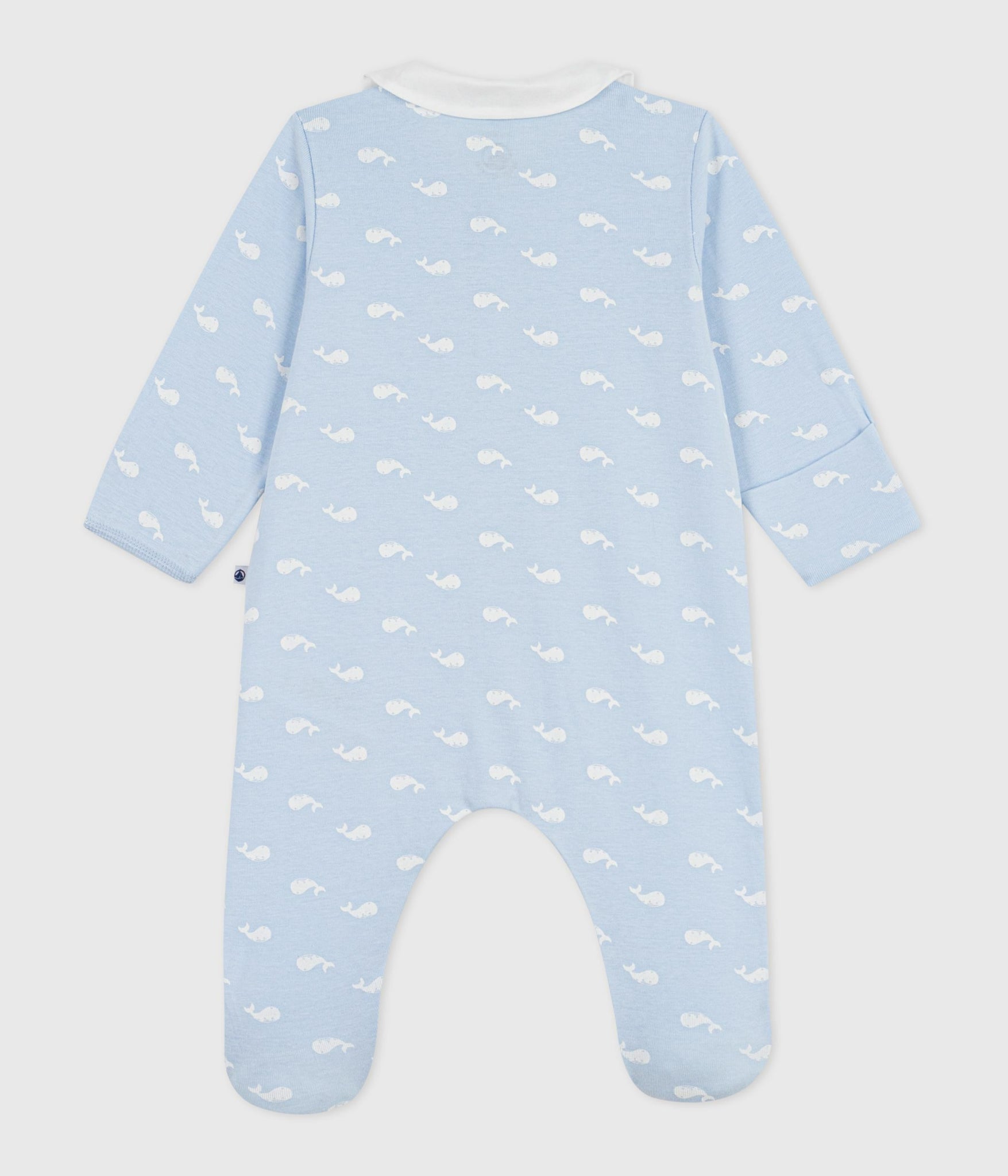 Baby boy front snap whale print footie with collar